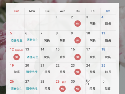 ↑診療カレンダーが正しく表示されない場合はこちらよりご確認ください。