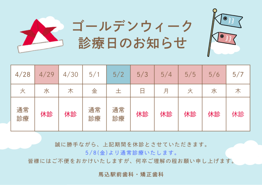 2026.4.23 | お知らせ【ゴールデンウィーク期間中の診療について】