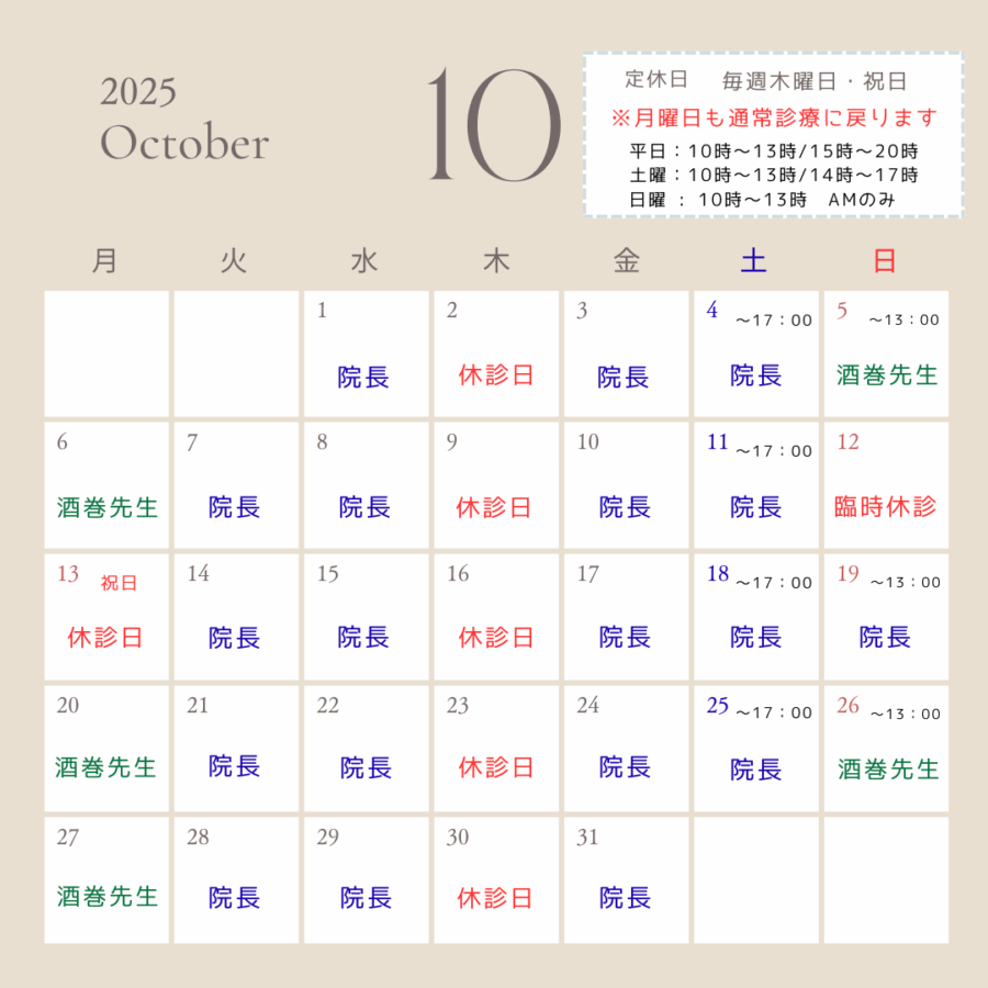 2025.9.19 | お知らせ10月の診療医師カレンダーのお知らせ